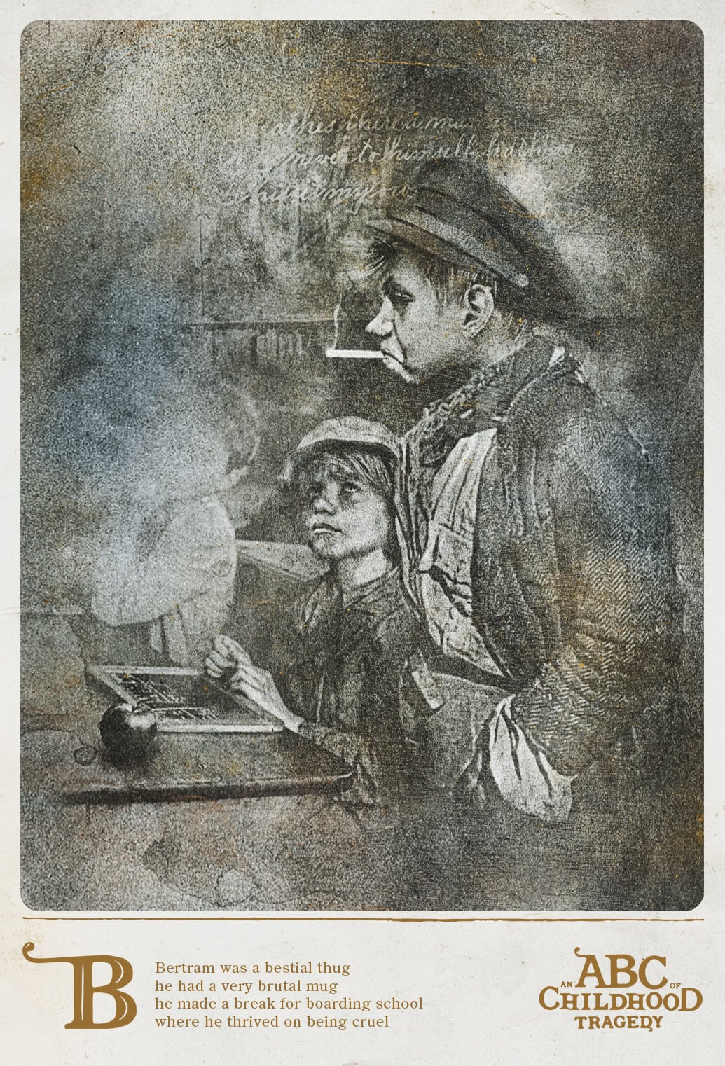 “An ABC of Childhood Tragedy unforgettably depicts the doomed and desperate lives of children and their cohort of catastrophe. Twenty-six dark and witty illustrations, each a tragic comedy of innocence and vulnerability. Twenty-six hauntingly beautiful portrayals of injustice and suffering by Føgra.” – JBP
